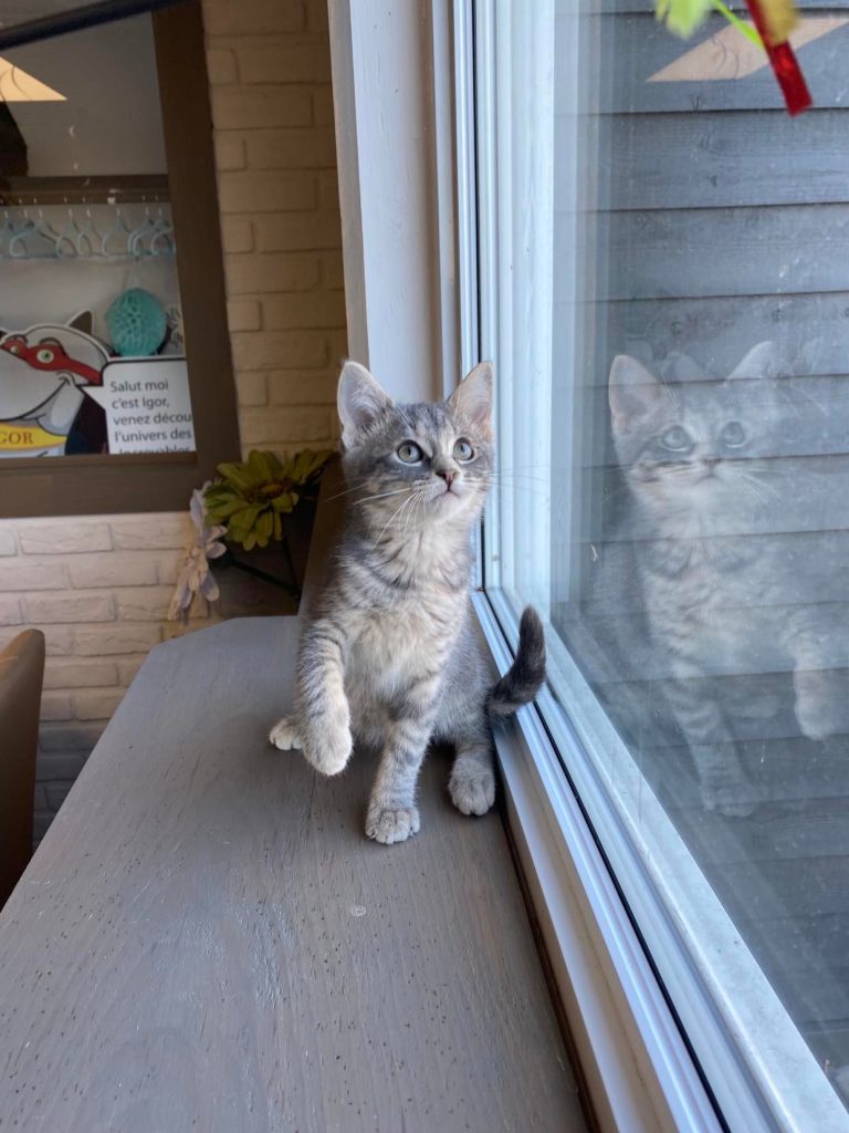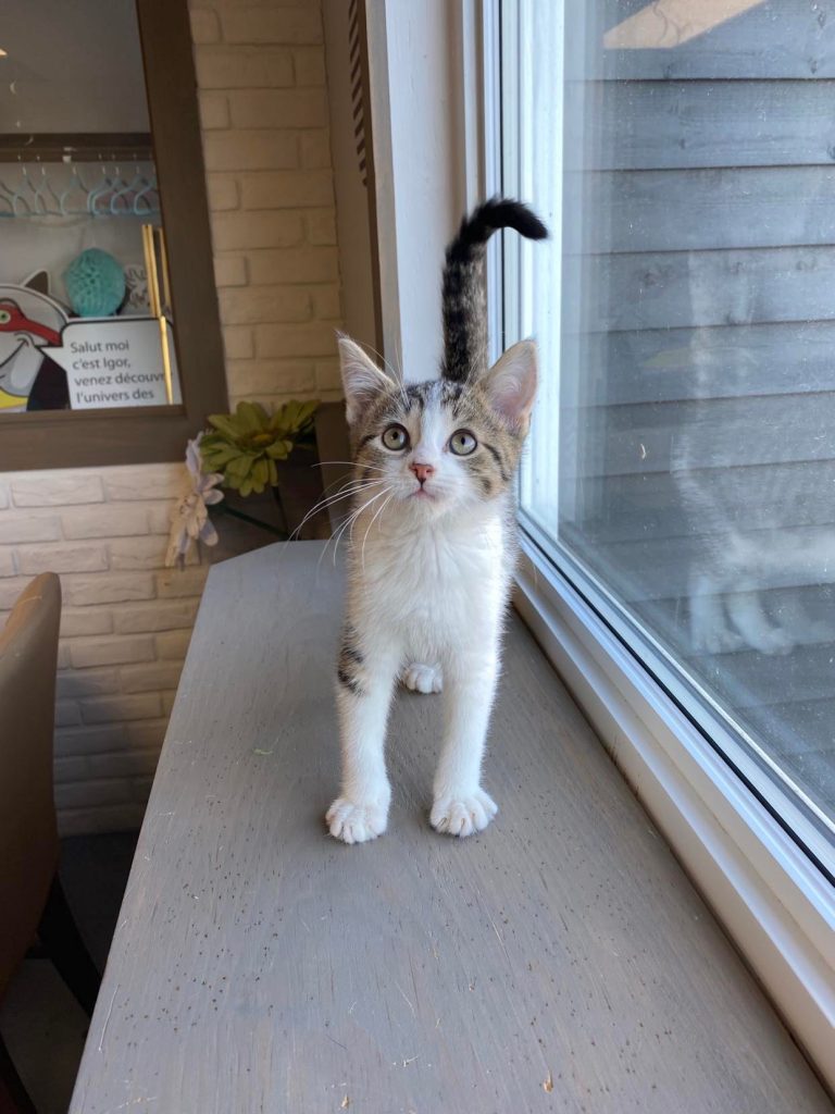 Sexe : Femelle Âge : +/- 3 mois Raison de la prise en charge: Abandon Dégriffé ? : Non Stérilisé(e)?: À venir Chiens : Oui Chats : Oui Enfants : Oui Pour adopter Pauline, cliquez sur S’inscrire à la liste d’attente https://www.sparegionale.ca/animaux/profil/00228-Pauline-00228